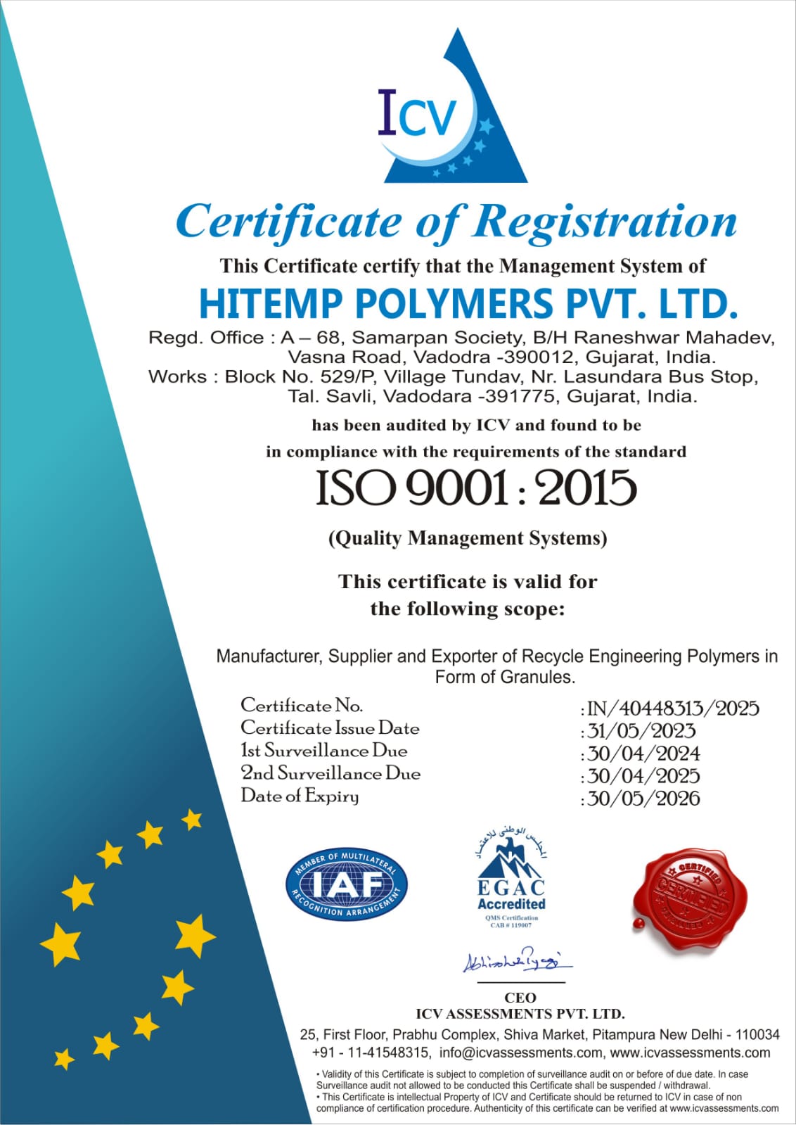 Hitemp Polymers is a fast growing Reprocess Extrusion unit. We produce wide range of Reprocess Engineering Compounds. With two decades of experience and customer service Hitemp Polymers is able to fulfil customer's technical & commercial expectations. We are one of the leading supplier of wide range of engineering polymers powering various number of industries like Automotive, Telecom, Electronics & Electrical, Home Appliances, etc. taking Plastic Raw Material as the key line.